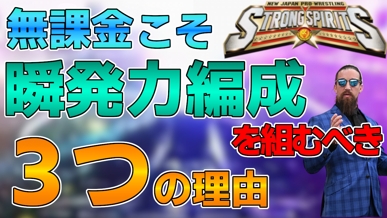 Generated with Qt 総合力を上げるためのおすすめデッキ編 前提 前回分類したパートナーのタイプを基に考察していきます 見づらいかもしれませんが今回も右下に表は出しておきます デッキの組み方 最初に まずデッキへの影響力が大きい、つまり高凸のパートナー を借りられるフレンド枠から考える 前回話したようにオカダ型は無凸でも使いやすく、裏を返 せば凸は必須ではない 凸の効果が大きく、かつ一枚で総合力に大きく影響を与え るのは、現状ではやはり凱旋ヒロムと怨念タイチ 総合力を上げたいなら、心属性は凱旋ヒロム、技属性は 怨念タイチを借りるべき(とはいえ試合でもそこそこ強く なります) よく「 体属性はどのパートナーを借りれば良いですか? という質問を頂くのですが、体属性の心得Lv4のパート ナーが実装されるまでは、よっぽどのことがない限り凱旋 ヒロムか怨念タイチで良いと思います 効果(大)スキルを50%オフで貰える時点で強いが、 性を問わない 効果(小)スキルも選択肢で一つ、!マー クで一つ貰える 効果(小)の50%オフは割引のない効果(大)スキルよりも 効率が良いので、体属性でも十分総合力を稼げる 次に 表を参考にしながら、オカダ型、鷹木型のパートナーを 中心に、なるべく2種類のトレーニングにまとめる というのが基本だと思うのですが、現状のバランスだと個 人的には 瞬発力 を含めた編成にすることをおすすめします 瞬発力編成のすゝめ 結論から言ってしまうと、この3人の相性が良すぎる 「疲れ知らず」を習得できるオカダの存在 実際これが理由の8割くらいを占めている 道場中のグッドコンディションを選択肢で習得させてく れるパートナーは何人かいる 例)「幸運」田口「トレーニング上手」裕二郎など 「疲れ知らず」はトレーニングの消費体力そのものを減 らしてくれる(15%、数値でいうと大体4) トレーニングは、限られた体力というリソースをいかに 効率よくステータスに変換するかという作業 確率で10回復できる「幸運」もかなり強いが、運に左右 されず計算しやすい「疲れ知らず」の方がおすすめ また、消費体力が減るということは、選択肢やメンタル での体力回復の効果が相対的に上がる点も大きい 現状「疲れ知らず」をくれるのは鷹木とオカダのみだ が、オカダの方が基本的に早くイベントがくるのでおす すめ(鷹木も優秀なので併用も全然有り) もちろんオカダ自身がパートナーとしてのスペックも高 く、SRでも最悪Rでも代用が利きやすいのもメリット 消費体力が少ない、PHYも上げられる PHYは試合においてかなり重要だと考えている(特に道場4 連戦) 初期の頃流行った筋力3メンタル3編成で、道場4連戦たま に負ける事故は大体PHY不足 カンストせずステータスを伸ばせるという点でも、試合 で勝ちやすくするという点でもPHYは重要 トレーニングとして見ると筋力と受け身は 26 、技術と瞬 発力は 24 の体力消費、メンタルは5回復 メンタル以外はトレーニングLvが1上がるごとに消費体力 が1増加という仕様 2の差とはいえ育成全体でのトレーニング回数を考える と、筋力や受け身に比べかなり効率よくトレーニングが できる 金スキル SSRを使ったときの話になる オスプレイもジェイも投げのフィニッシュホールドに関 する金スキルを持っている 実装されている選手の半数以上のフィニッシュホールド が投げ パートナー固定で流用しても金スキルが総合力だけの死 にスキルになりにくく、試合でも活躍しやすい まとめると オカダ→SP SPDボーナス、疲れ知らず、(強烈なフィニッ シュ) オスプレイ→SP PHYボーナス、(鮮やかなフィニッシュ) ジェイ→PHYボーナス、投げメインイベンター かみ合わせが完璧 筋力の鷹木・タイチ・オーカーンでも似たようなことは できますが ・トレーニングの消費体力 ・金スキルの有用性 ・疲れ知らずをもらえるタイミング いずれも瞬発力編成の方が優秀(もちろん併用するパター ンもよくある) 実装当初は鷹木の影に隠れていたが、蓋を開けてみると各 ユニットのリーダー格はちゃんと新日SS内でも優遇されて いた 総合力上げはもちろん、道場4連戦に勝てない人こそ瞬発 力編成を試してほしい 実際の編成例 まとめ フレンドには凸の影響が最も大きい凱旋ヒロムか怨念タイチ を借りる 編成は瞬発力をベースにすると効率的かつ安定しやすい 余談 BOSJイベントの報酬が来た Aブロックの5選手全てでランクインできたのでガチャを回し たところこんな感じの結果でした 鷹木型のファンタズモが2凸になったので使ってみたとこ ろ、やっぱり2回心得を重ねるだけで50%オフになるのはめ ちゃくちゃ強かった ジェイと鷹木も1凸で控えているので早く2凸になってほしい